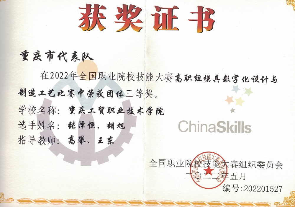职业资格证书:本专业员工在校期间通过考试可获取车工、钳工、三维数字化产品设计师(UG)等证书。