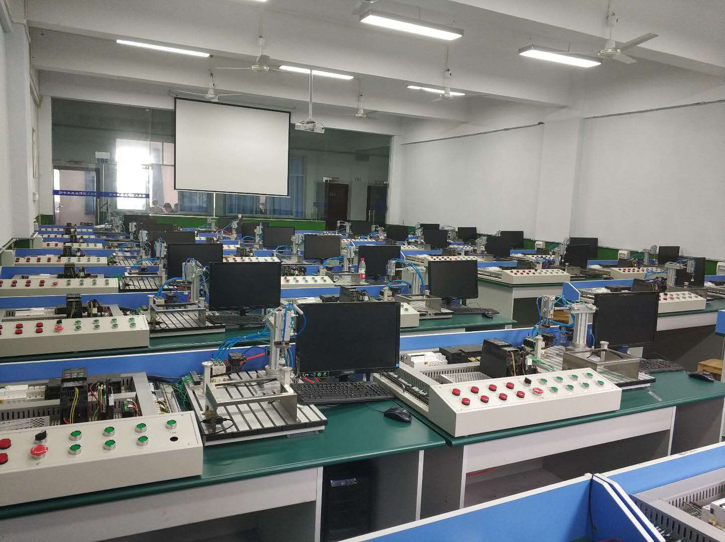 计算机仿真实训室、机械设计实训室、控制电路实训室、工业网络实训室、自动化生产线调试与安装实训室等。