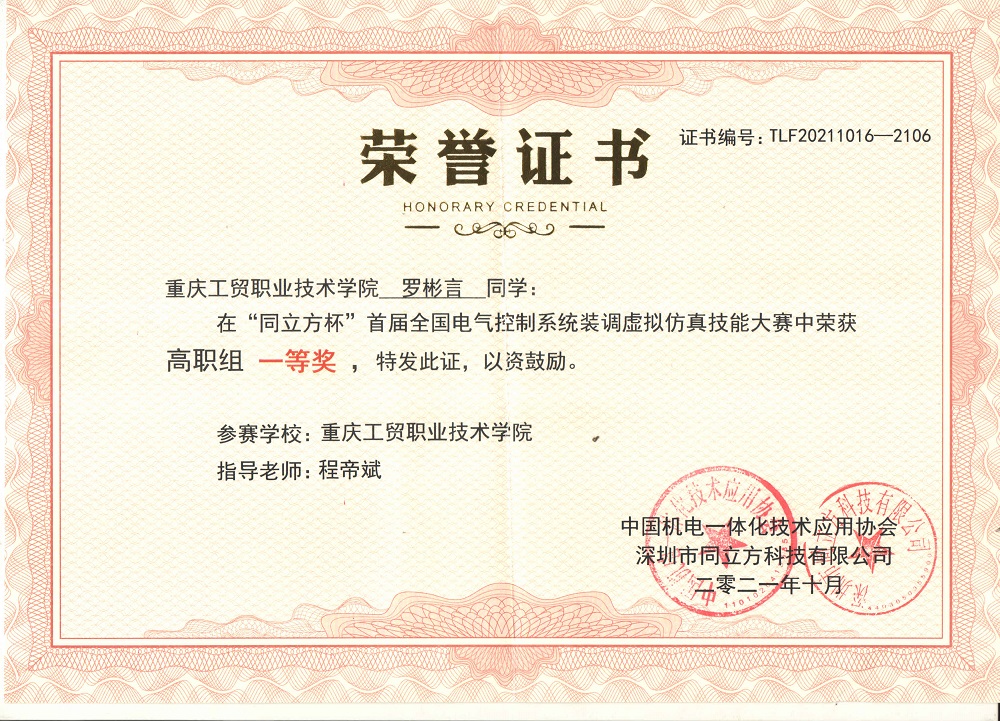 员工多次获得全国电气控制系统装调虚拟仿真技能大赛、重庆市老员工工程实践与创新能力大赛等奖项。