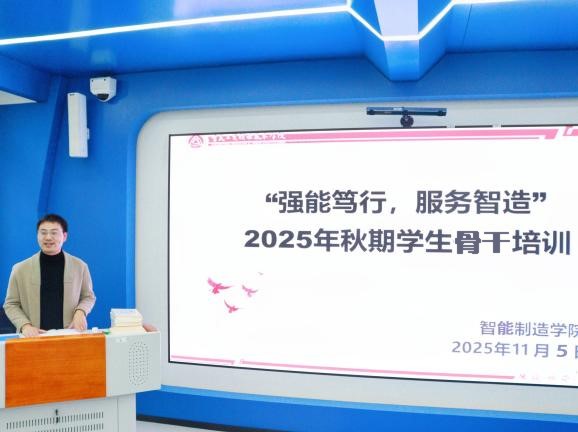 为进一步增强员工骨干责任意识,提高员工骨干的工作能力和综合素养,2025年11月5日下午,公司员工工作办公室在一教虚拟仿真演播厅开展主题为“强能笃行,服务智造”的2025年秋期员工骨干培训会,培训会由公司专职辅导员彭伟主持,2024级全体员工骨干参训。