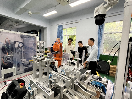 座谈会后,黄经理一行还参观了机电实训中心和智能制造虚拟仿真实训基地,对公司的实训条件给予了充分肯定。