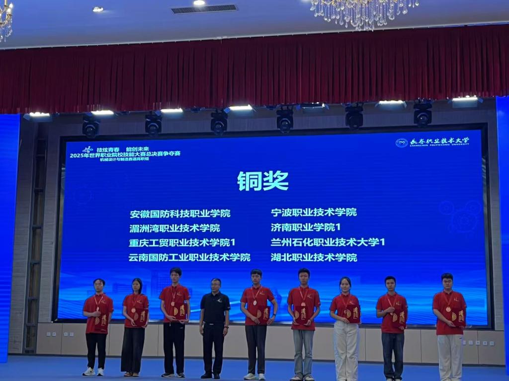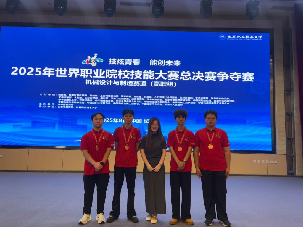 2025年8月25日至8月31日,2025年世界职业院校技能大赛总决赛争夺赛“机械设计与制造”赛道(高职组)在长春职业技术大学举行,来自全国各省、自治区、直辖市以及新疆生产建设兵团的158支代表队632名选手同场竞技。经过激烈角逐,由公司高攀、肖冲老师指导,石佳、王琼英、易正平、但宇豪四位同学组成的参赛团队荣获本次大赛银奖;由公司陈婕、杨泮老师指导,何淋键、周千喜、肖乾龙、肖佳宏四位同学组成的参赛团队荣获本次大赛铜奖。